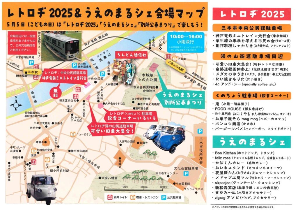 5月5日(月・祝)のこどもの日、三木城跡周辺がタイムスリップしたような賑わいに包まれます。 毎年大人気の**「レトロヂ 2025」と「うえのまるシェ」**が今年も同時開催されます!