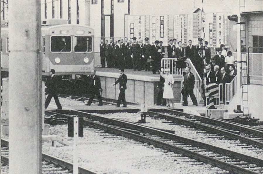 両殿下は午後3時10分、神戸高速鉄道の新開地駅に到着されました。駅長の先導でホームへ進まれたお二人は、向かい側のホームで歓迎する人々に笑顔で手を振って応えられたといいます。