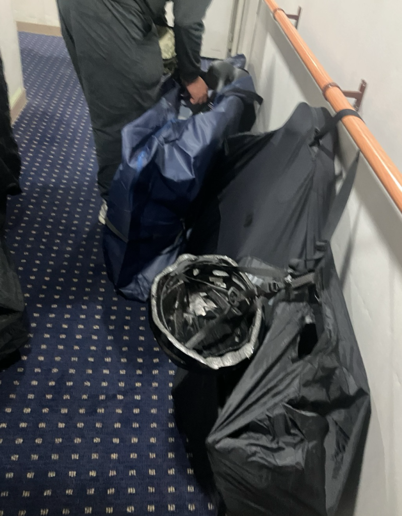 輪行袋で自転車をパッキング、船内に案内された場所で保管いただきました。