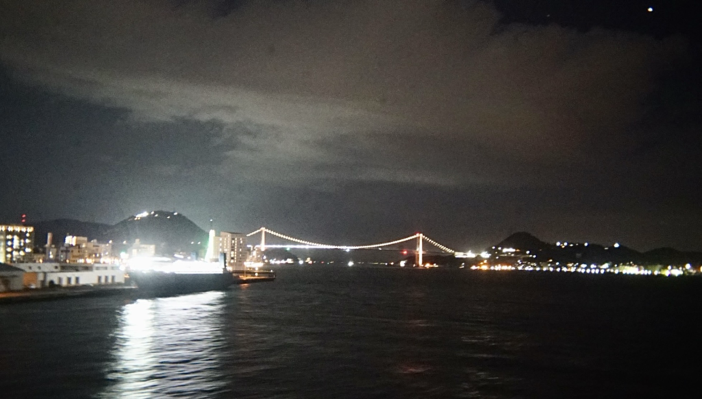 夜風を浴びながら眺める、本州と九州を結ぶ光の帯。最高です!