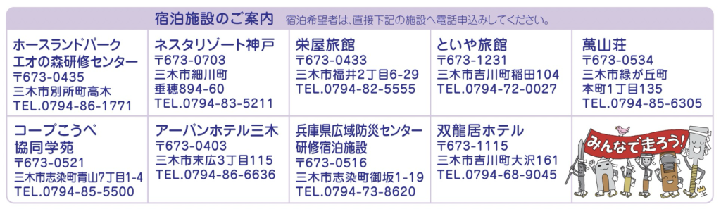 | 兵庫県広域防災センター 研修宿泊施設 | 〒673-0516 | 三木市志染町御坂1-19 | 0794-73-8620 |