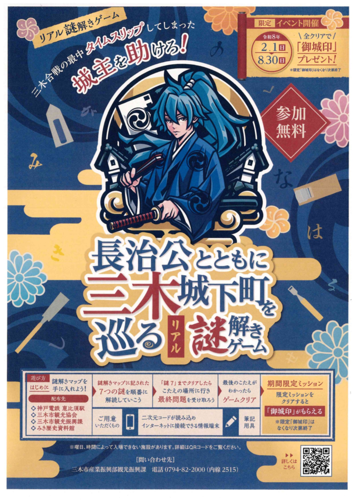 「長治公とともに三木城下町を巡るリアル謎解きゲーム」 が開催されています。