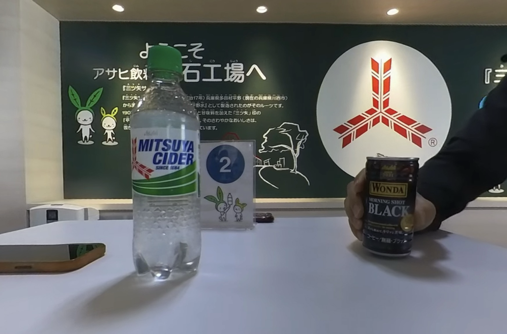出来立ての三ツ矢サイダーとワンダブラックをいただきました。