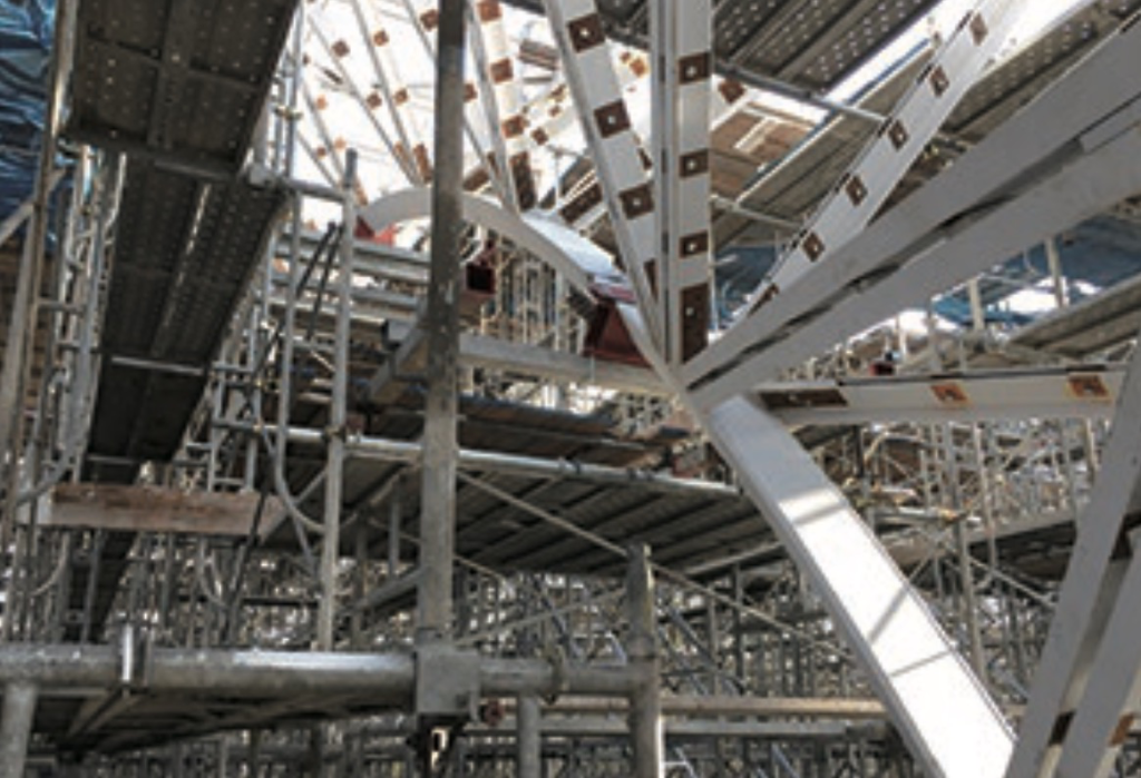 - 2階のランニングギャラリー 間近で「ブレードトラス」の複雑な接合部が見られます。3DCADを駆使して作られたという、ミリ単位の美しさは圧巻!